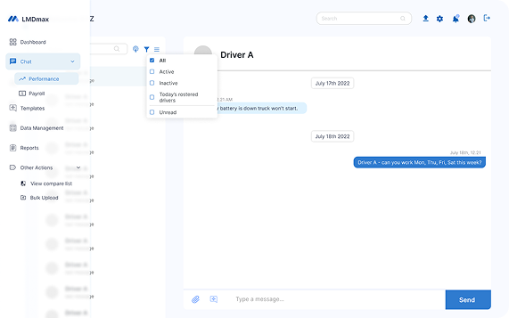 Send direct messages or broadcast updates to active, inactive, or rostered drivers—perfect for important announcements, updates, and targeted communication.