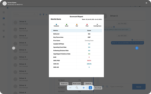 Access a full record of chats, write-ups, reports, and performance trends per driver—in one place—no need to dig through files or tools.